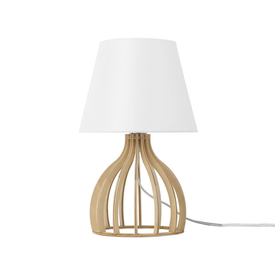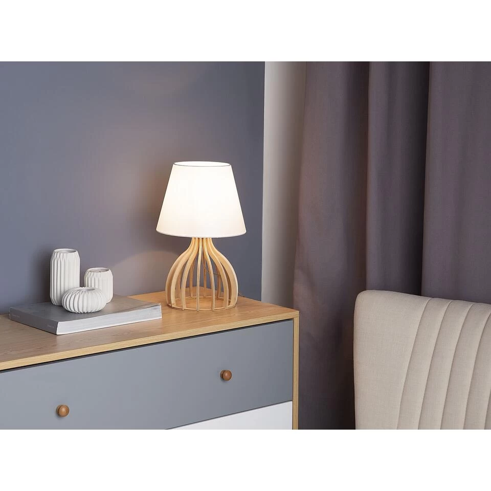 Tafellamp met een luxe uitstraling in wit. Stel stijlvolle trends in en geniet van het gezellige licht van deze tafellamp. De ronde, klassieke lampenkap is gemaakt van zwart poly-katoen en verspreidt een aangenaam licht. De klokvormige lampvoet bestaat uit smalle, zwarte houten stutten, die in een open structuur zijn geplaatst. Zo heeft de functionele tafellamp een lichte uitstraling en past hij perfect als decoratief accessoire op bijzettafels of ladekasten in zowel moderne als klassieke woonruimtes.