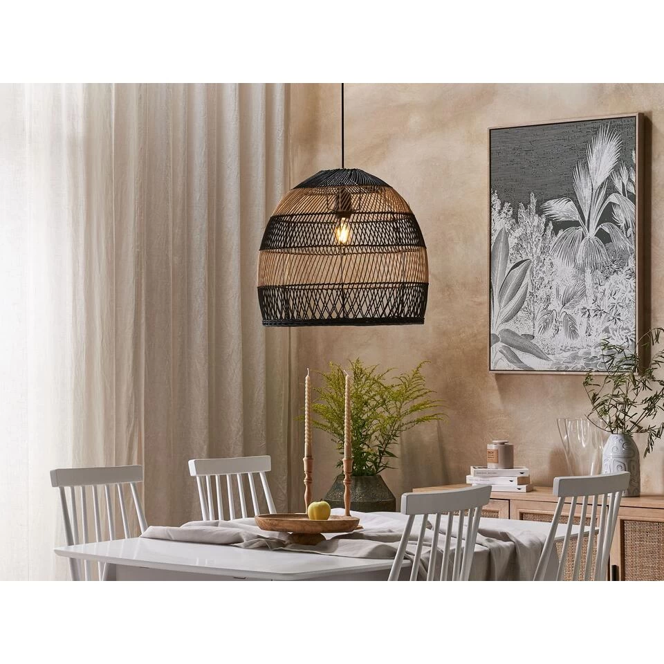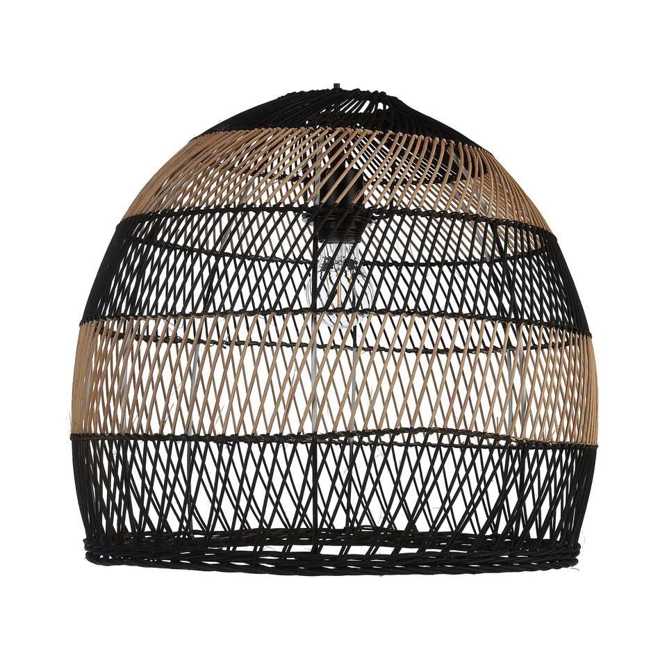 Hanglamp met rotan kap. Breng een boho sfeer in huis met deze hanglamp. Dit stuk, gemaakt van natuurlijk rotan, gaat vele jaren mee, zelfs zonder dagelijkse verzorging. Omdat de kap twee kleuren heeft, zal hij zeker de aandacht trekken van je gasten. Het omgevingslicht zoals dit zal het beste werken in je slaapkamer of woonkamer.