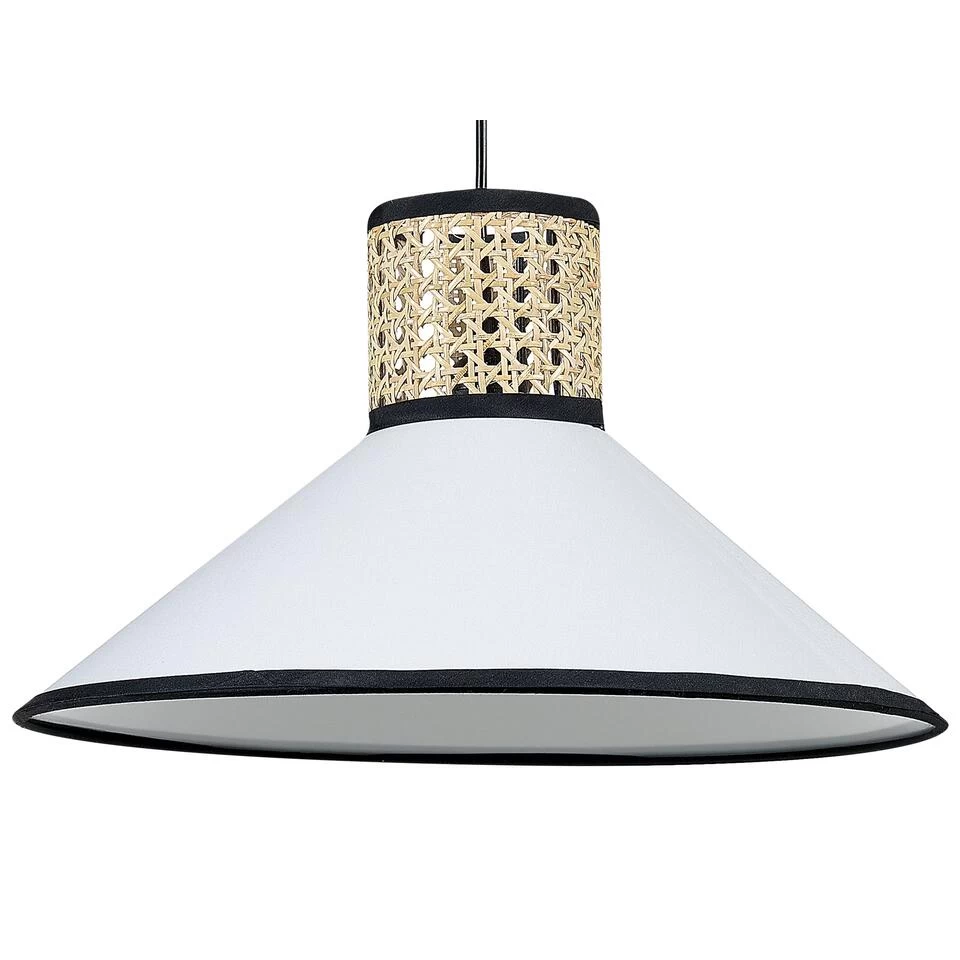 Hanglamp met stoffen lampenkap. Verlicht je woonkamer, slaapkamer eetkamer met een lamp die niet alleen functioneel, maar ook stijlvol is. Deze hanglamp in klassiek ontwerp, past door zijn universele kleuren perfect bij allerlei interieur ontwerpen. De kabel lengte kan aangepast worden naar jouw behoefte. De combinatie van witte stof en rotan riet look zal er prachtig uitzien boven de eettafel, zo kun je genieten van een diner met vrienden en familie in een prettig verlichte sfeer.