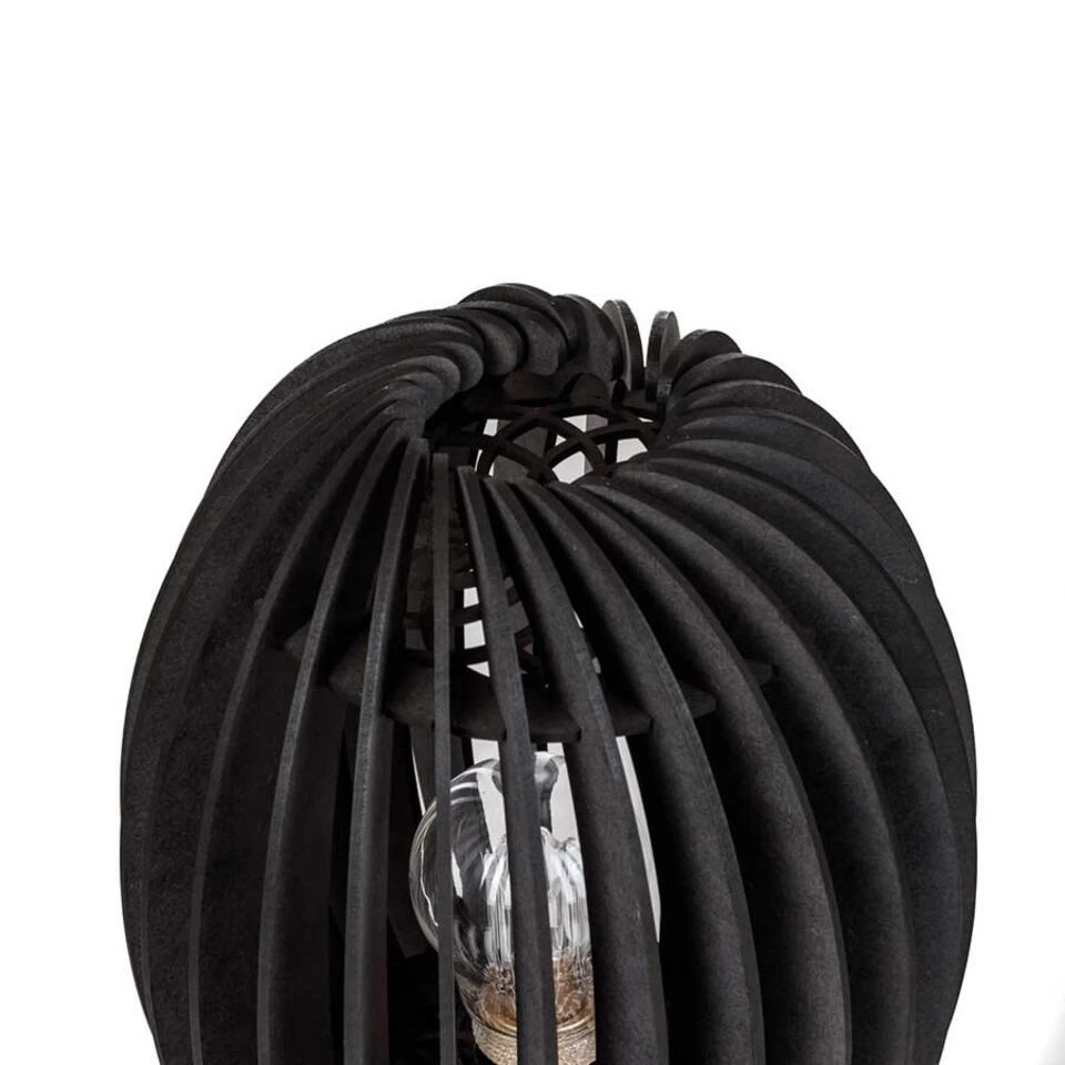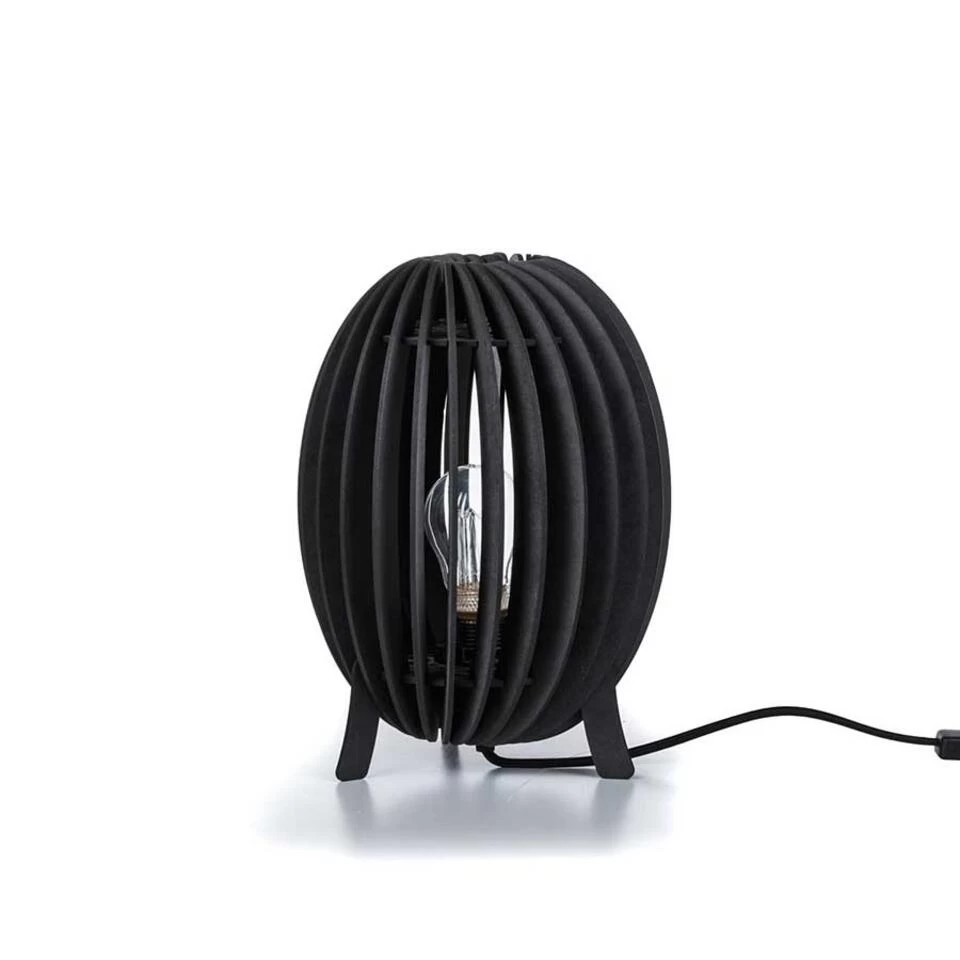 Deze leuke tafellamp van hout geeft een mooi effect door het licht wat door de houten latjes probeert te ontsnappen. Dit model is leverbaar in 2 maten en dit is de kleinste maat. Geschikt voor een E27 lichtbron van maximaal 25 Watt (excl.). Deze Swan tafellamp is 21 cm breed en de kap is in totaal 27 cm hoog. Wordt geleverd met zwart snoer incl. een snoerschakelaar. Kleur: zwart gekleurd hout.