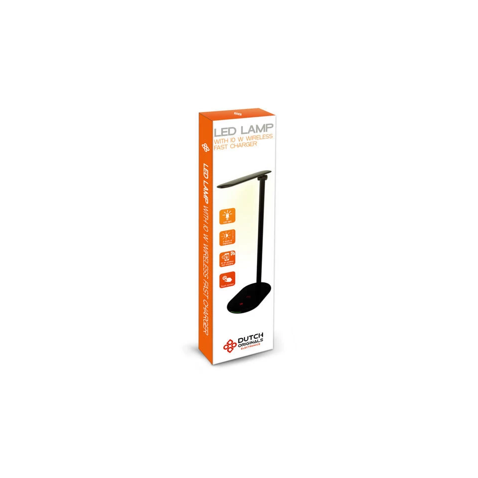 De LED-lamp heeft een strak design en een ingebouwd plateau waar je je telefoon draadloos mee kan opladen