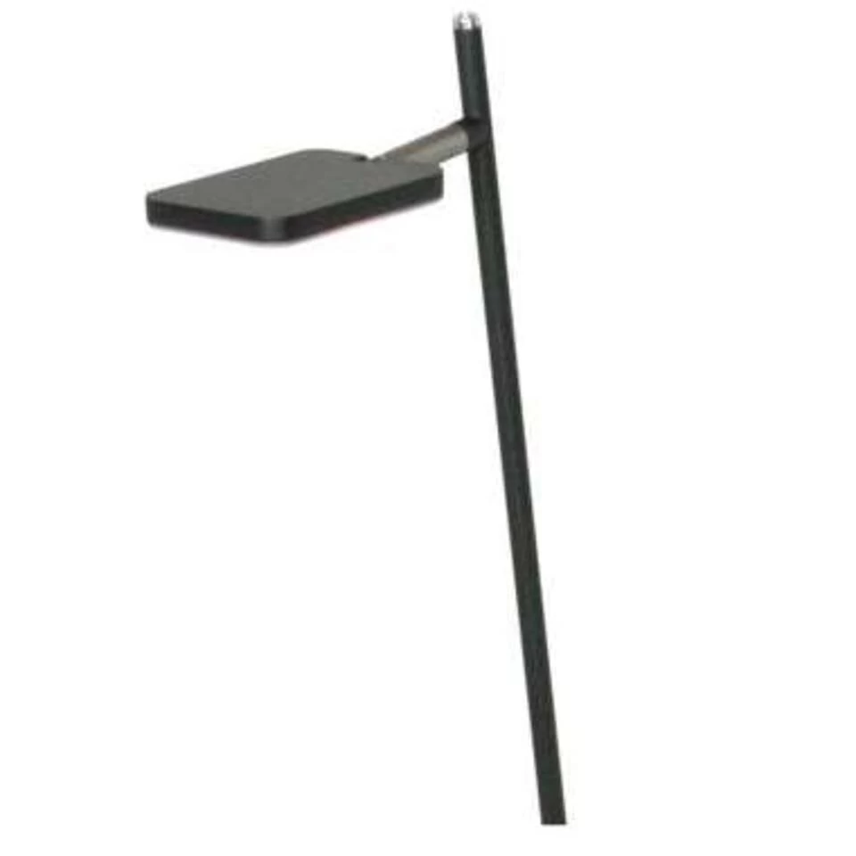 De totale hoogte van deze leeslamp is 128 cm en de voet is vierkant met een breedte van 15 cm, het kapje is 9 cm lang en 6 cm breed. Er bevindt zich een kogel gewricht aan de onderzijde zodat de stang in elke positie schuin te zetten is. De kleur van dit armatuur is zwart i.c.m aluminium accenten.