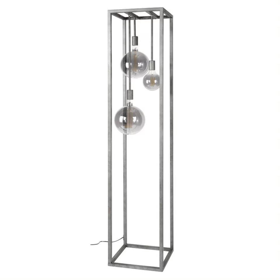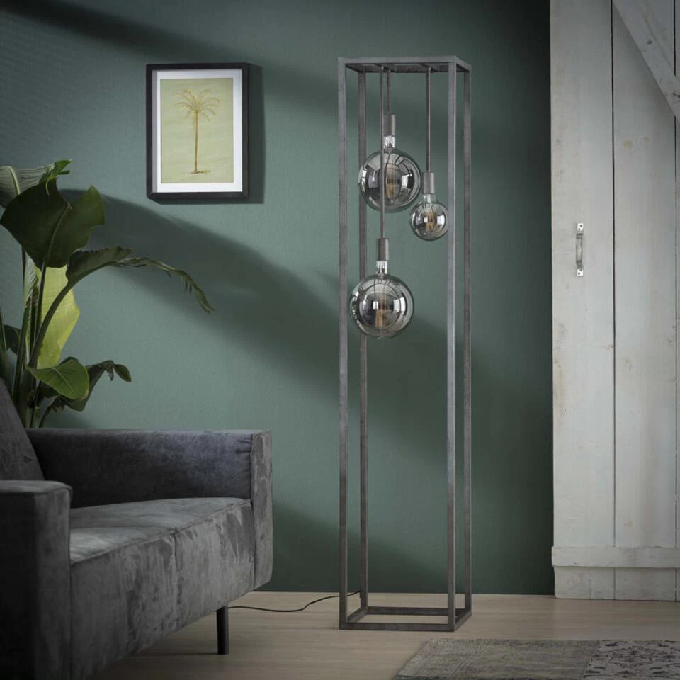 Deze rechthoekige vloerlamp is afgewerkt in oud zilver. Het open armatuur zorgt ervoor dat de verspringde lichtbronnen goed tot hun recht komen. Het licht wordt zo mooi door de ruimte verdeeld.