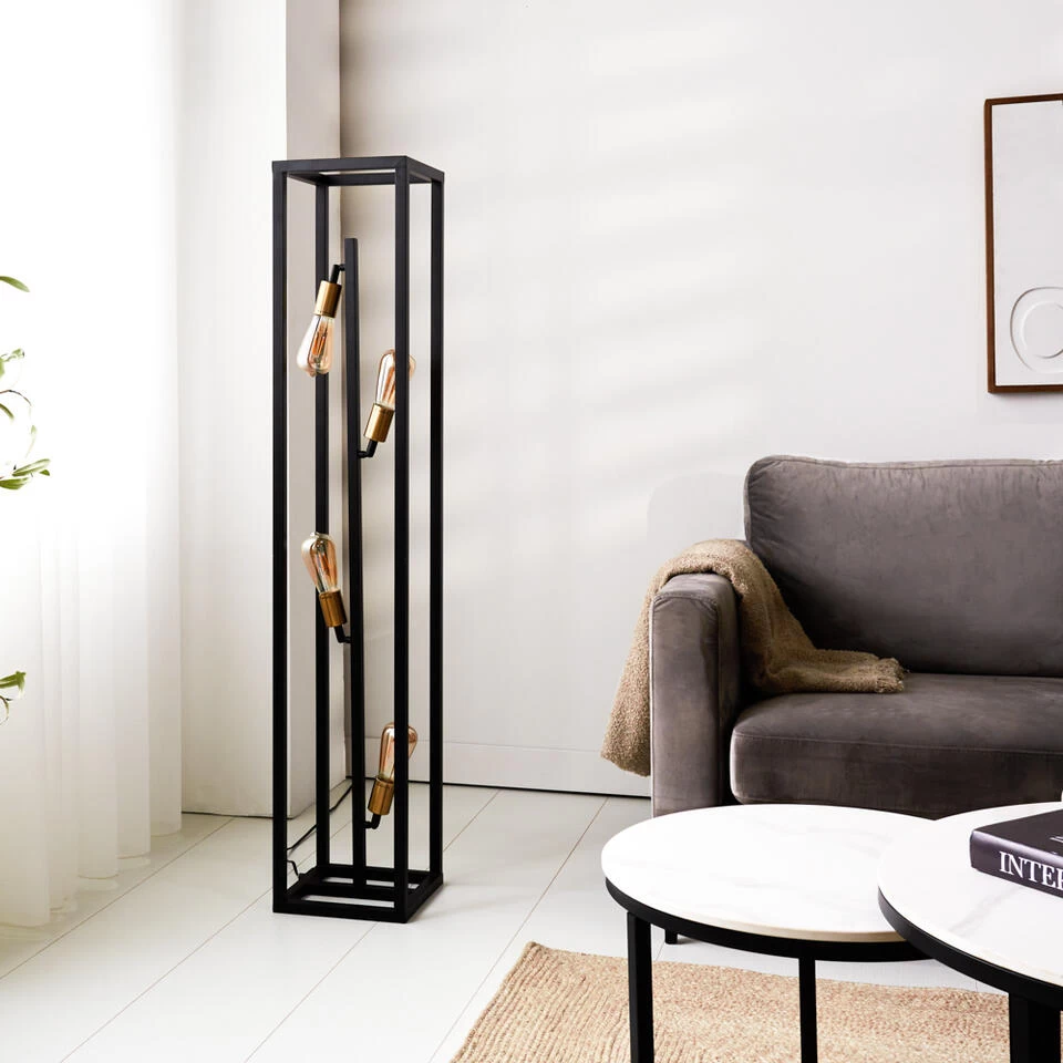 De prachtige, industriële vloerlamp Otis past perfect in ieder interieur! Deze vloerlamp krijgt dankzij het zwarte frame een stoere look. Hierdoor past de Otis goed in een industriële setting, maar valt de vloerlamp ook gemakkelijk te combineren met andere woonstijlen. Vloerlamp Otis valt op dankzij het bijzondere design; de lichtbronnen hangen op diverse hoogtes en kunnen ook van richting veranderd worden. Geef industriële vloerlamp Otis snel een plekje in jouw interieur, de Otis vindt in meerdere interieurstijlen zijn plek en zal de aandacht naar zich toe trekken waar de hij ook maar geplaatst wordt!