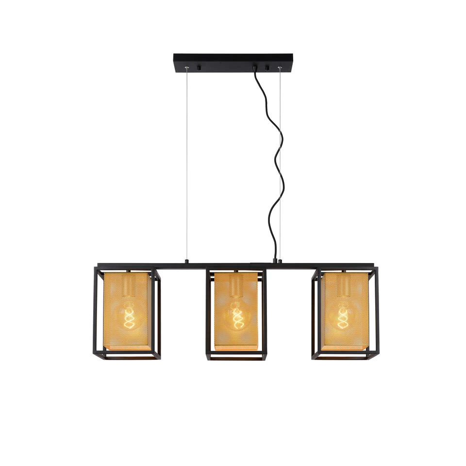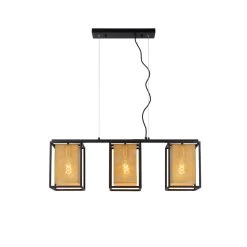Het verrassende huwelijk tussen metalen schrijnwerk, messing gaas en expressieve filamentlampen resulteert in Sansa. Een hanglamp met een moderne uitstraling en tonnen karakter. Vanaf de compacte bevestigingsplaat daalt een platform neer waar drie lichtpunten aan opgehangen zijn. Die zijn stuk voor stuk omgeven door een slank metalen kader met daarbinnen een rasterwerk in messing. De hoogte van Sansa stel je voor de installatie gemakkelijk zelf in. Je kiest tussen hoogtes van 50 tot 158,5 centimeter. Geniet optimaal van de gezellige, diffuse lichtverspreiding door je nieuwe plafonnière aan te sluiten op een dimmer.