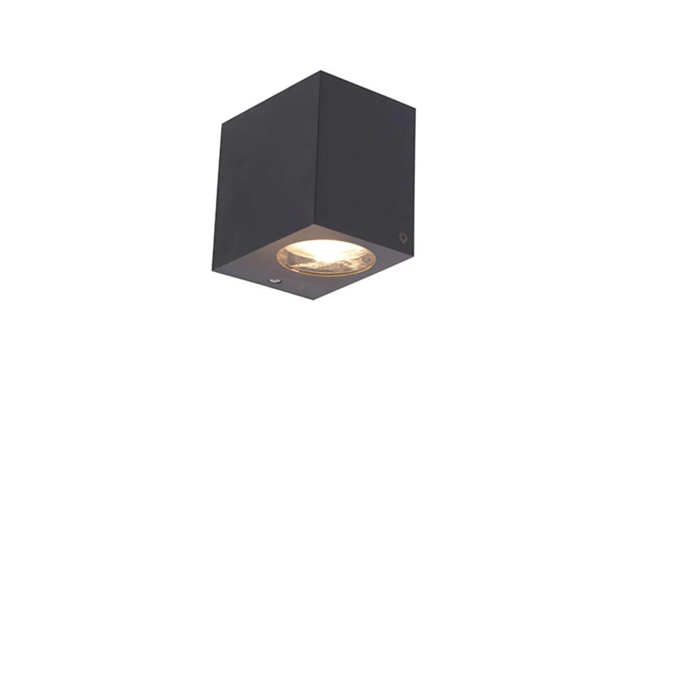 Een super eigentijdse en tijdloze wandlamp in kunststof. Omdat hij een mooi strijklicht geeft aan de muur, creëert hij een gezellige sfeer bij je terras of aan de voordeur. De lamp heeft een GU10 fitting en wordt exclusief lichtbron geleverd, zorg dat je deze er dus nog bij besteld (max. 7 Watt). Je kan hem ook dimmen met een externe dimmer (deze is niet inbegrepen). Hij heeft een hoogte van 9 cm en een lengte van 7 cm. De diepte van de lamp is 9,2 cm. Door het kunststof dat gebruikt wordt, de donkergrijze keur en de vorm, krijgt de lamp een strak tintje, waardoor hij het best past in een moderne of design omgeving. Het product is echt geschikt voor buiten dankzij de IP-waarde van IP44. Een musthave die zich overal huis voelt!