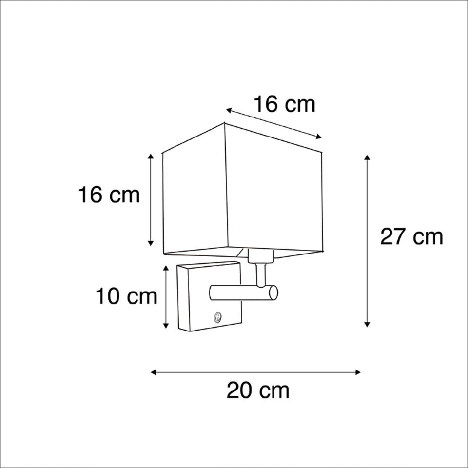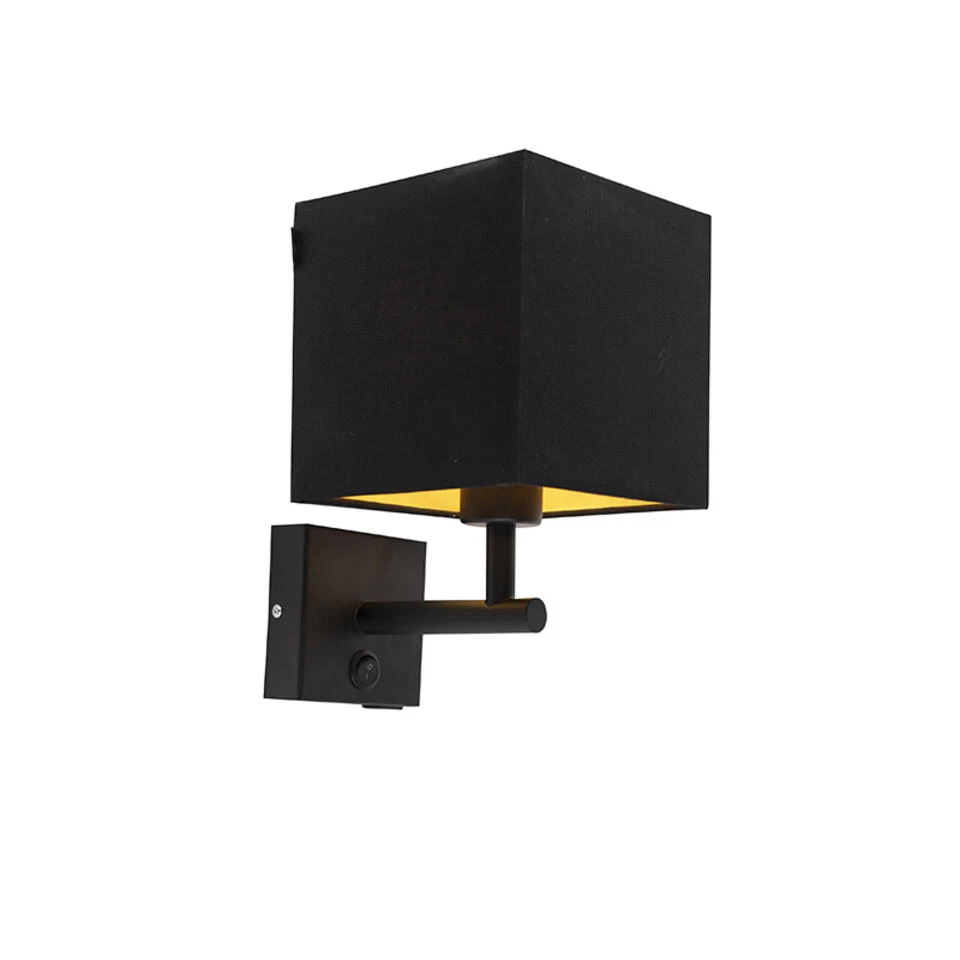 Onze wandlamp Combi 1 is nu uitgebreid met een USB-aansluiting, handig om je telefoon op te laden! Deze wandlamp is perfect om je muur een moderne sfeer te geven. Het is een praktische en stijlvolle wandlamp uitgevoerd in een zwarte kleur met een zwarte vierkanten kap en gouden binnenkant. De lamp heeft een grote E27 fitting en wordt exclusief lichtbron geleverd, zorg dat je deze er dus nog bij besteld (max. 40 Watt). De lamp is eventueel ook dimbaar met externe dimmer (niet inbegrepen). Deze Combi 1 is makkelijk te gebruiken dankzij de aan/uit knoppen op de montageplaat van de lamp. Hij heeft een hoogte van 27 cm, een lengte van 20 cm en een breedte van 16 cm. De montageplaat heeft een hoogte en lengte van 10 cm. De zwarte lampenkap in combinatie met goud is een echte eyecatcher die niet kan misstaan! Perfect als leeslampje in jouw slaapkamer!