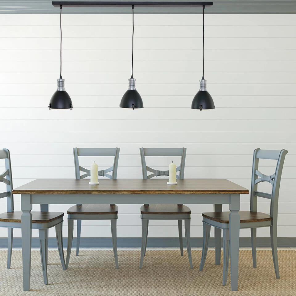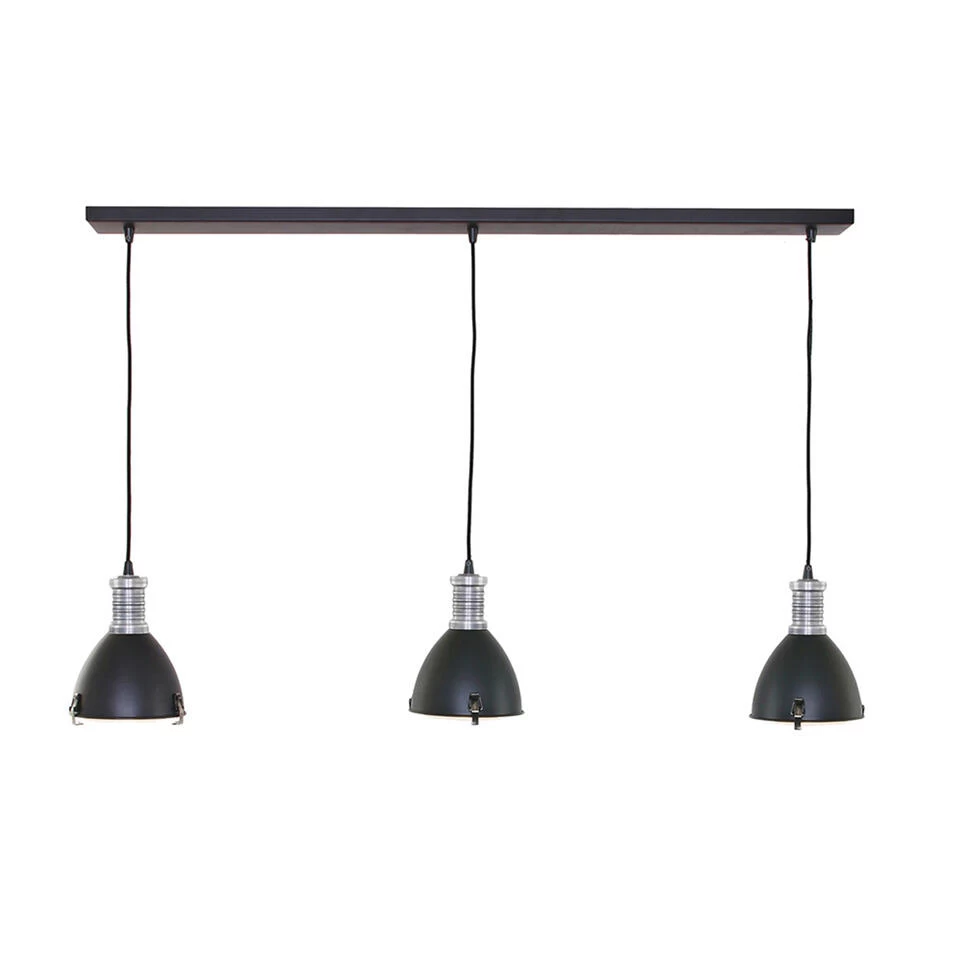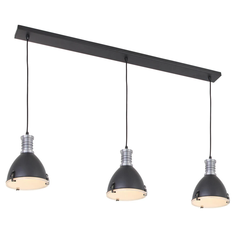 Mat zwarte 3-lichts hanglamp. Deze langwerpige lamp is afkomstig uit de Storm serie. Door de drie kleine E14 fittingen zijn alle type lichtbronnen geschikt tot 40 Watt. De totale lengte is circa 118 centimeter en de diameter van elke kap is 18 centimeter. De maximale ophanghoogte is 120 centimeter.
