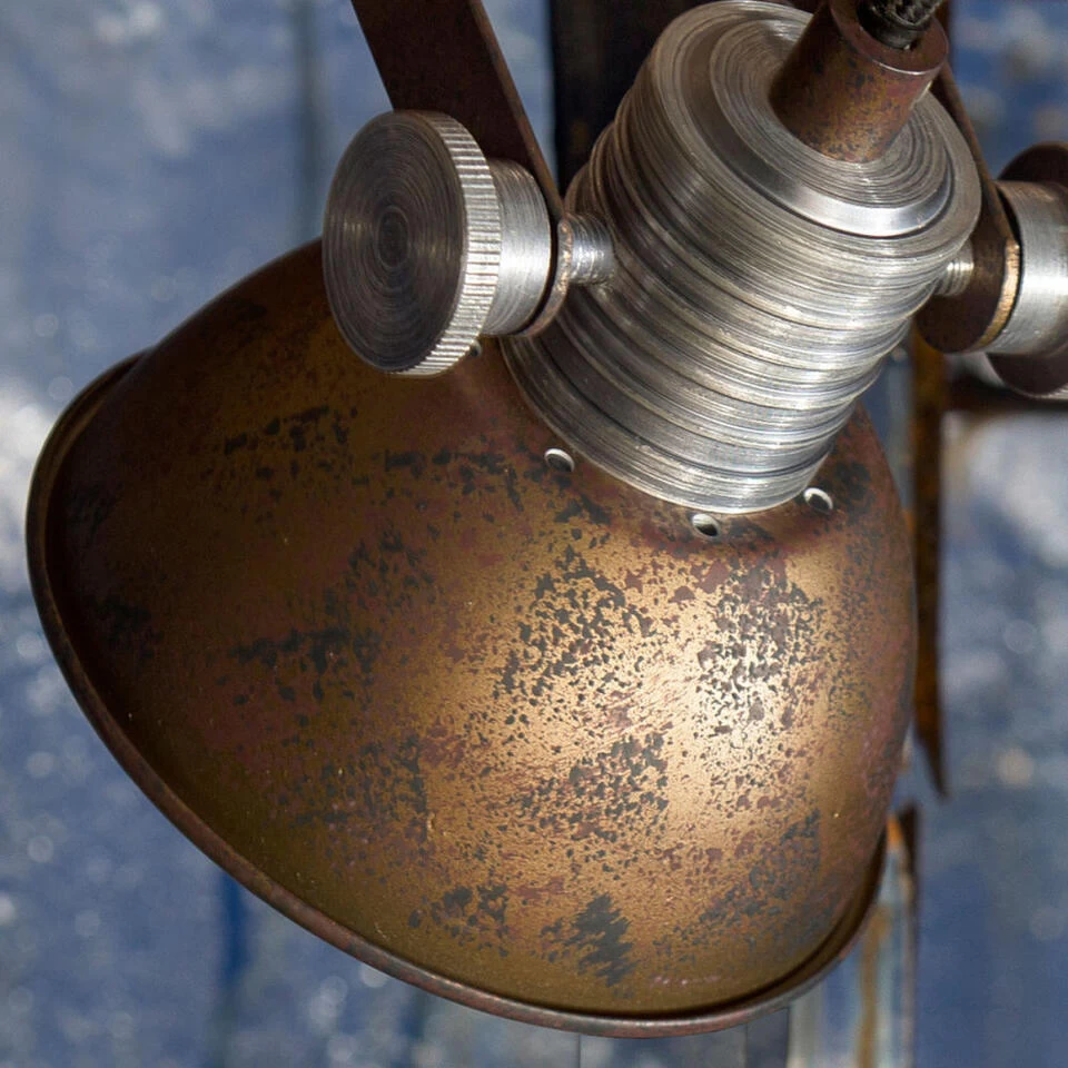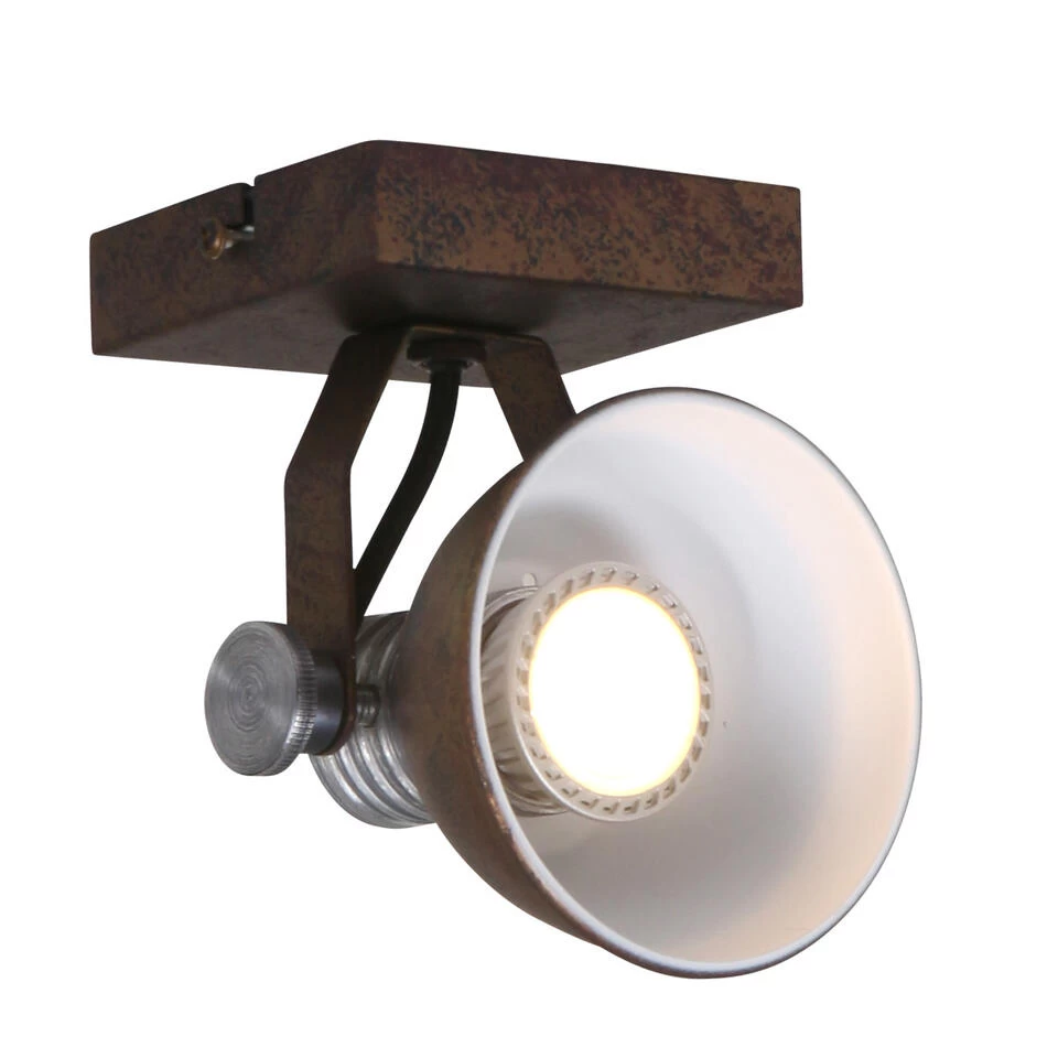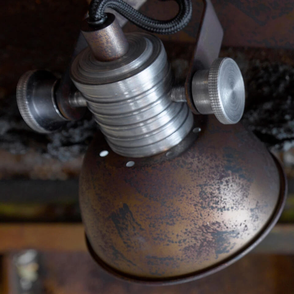 Bruine stoere plafond of wandspot uit de Brooklyn serie. Deze industriële spot is verstelbaar middels grove verstel knoppen en beschikt over een Dim to Warm 7W GU10 LED lamp. Dimbaar, middels een externe dimmer. Vervaardigd uit metaal en heeft een bruin getamponneerde kleur.Armatuur is voorzien van een stoffen/strijkijzer kabel. De diameter van de kap is 13 centimeter en de totale hoogte van het armatuur is 18 centimeter.