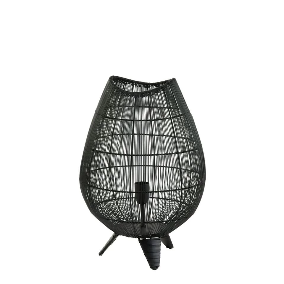 Deze moderne tafellamp Yumi is opvallend door zijn organische vorm. Aan de bovenkant heeft de lamp een golvende rand, wat ondanks het gebruik van metaaldraad zorgt voor een zachte uitstraling van deze lamp. De metaaldraden zijn dicht gespannen wat zorgt voor een mooi licht en dit is zelfs doorgetrokken in de afwerking van de pootjes van de lamp. Plaats deze lamp in een open vakkenkast of op een side table in een moderne woonkamer voor een sfeervolle toevoeging. De tafellamp is geschikt voor lichtbronnen met een E27 fitting. De afmeting van de lamp is Ø32×47 cm.