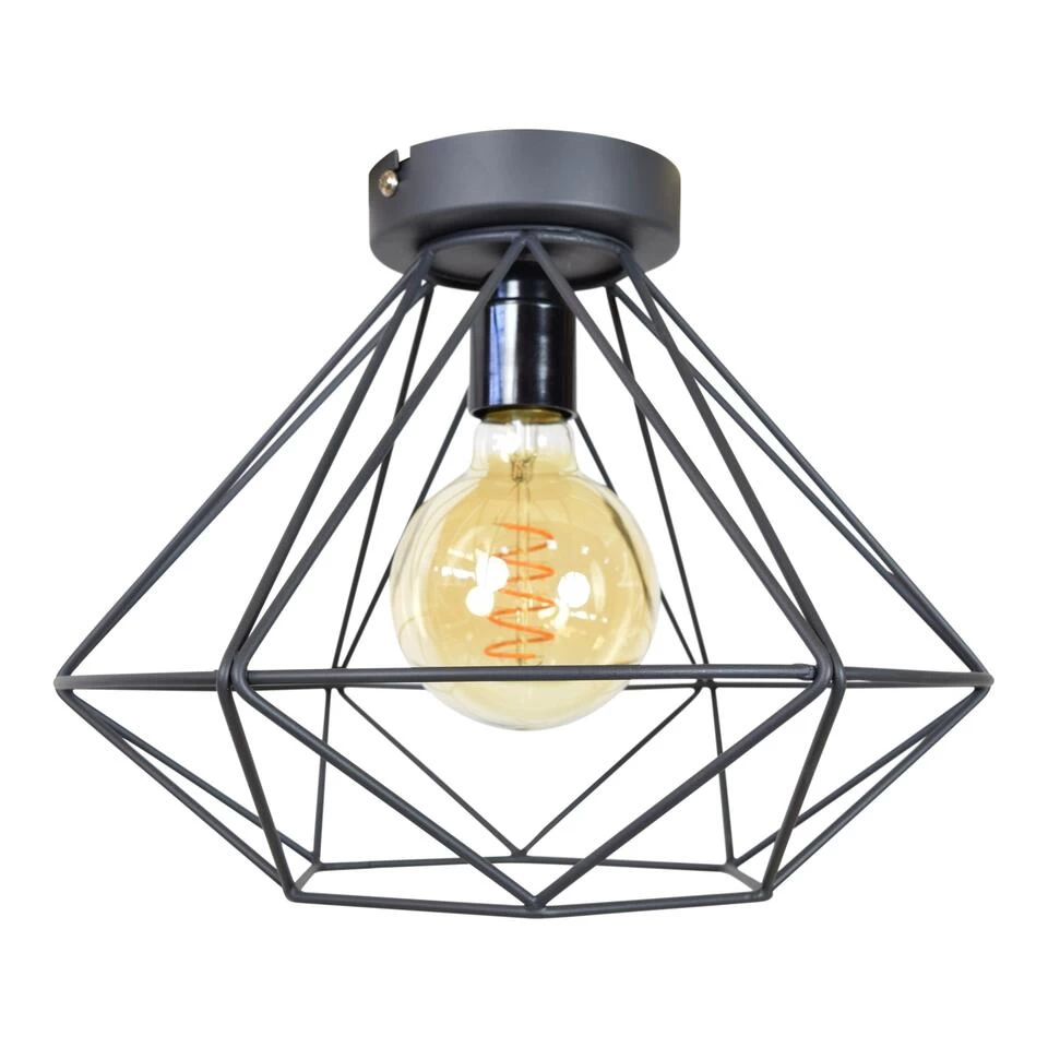 Stoere opengewerkte vintage plafondlamp van Urban Interiors die geschikt is voor een mooie sier LED filament lamp. De hoogte van dit armatuur is 20 cm en de doorsnede is 33 cm. Kleur: Zwart metaal. Geschikt voor een lichtbron van maximaal 60 Watt E27.