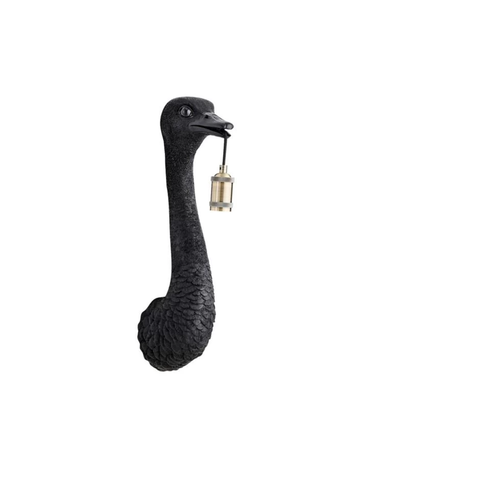 Heb jij jungle fever? Dan is deze Ostrich wandlamp zeker een aanvulling aan jouw interieur. De mat zwarte struisvogel is niet alleen een gave woonaccessoire maar ook een wandlamp! Doordat de vogel een pendellamp vasthoudt in zijn snavel kan hij jou voorzien van licht. Deze wandlamp bevestig je gemakkelijk aan de muur en bedien je gemakkelijk via de lichtschakelaar aan het snoer. Deze wandlamp hoef je niet aan te sluiten op een ingebouwd lichtpunt, maar de stekker stop je gemakkelijk in het stopcontact. De lamp heeft een afmeting van 18×15,5×57,5 cm en is geschikt voor lichtbronnen met een E27 fitting.