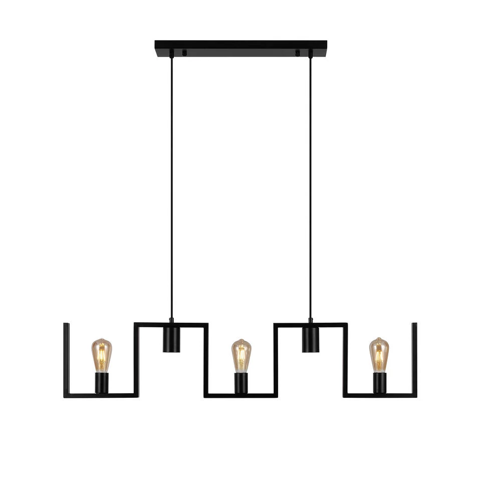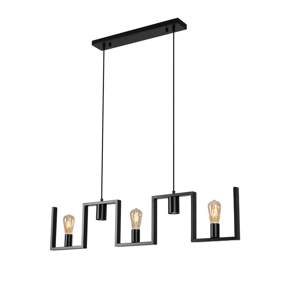 Deze 5 lichts hanglamp is met zijn lengte van 112 cm zeer geschikt voor een tafel van ongeveer 160 – 200 cm. De 2 spots met GU10 fittingen geven goed gericht licht naar beneden en de 3x E27 fittingen zijn geschikt voor sfeervolle LED filament lampen. De totale lengte is 112 cm en de hoogte is maximaal 150 cm maar simpel in te korten. De rechthoekige buis is 1,5 cm hoog en 3 cm breed. De kleur is mat zwart en wordt geleverd excl. lichtbronnen.
